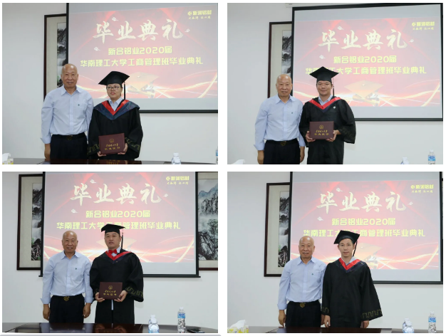 新合鋁業(yè)·華南理工大學(xué)2020屆工商管理班畢業(yè)典禮于8月10號(hào)在新合鋁業(yè)新興公司隆重舉行,經(jīng)過(guò)近三年的學(xué)習(xí),公司40位員工完成全部學(xué)業(yè)獲得畢業(yè)證書(shū)!在畢業(yè)典禮當(dāng)天,大家興高采烈地穿上了學(xué)士服,公司董事長(zhǎng)李董、總經(jīng)理潘總、財(cái)務(wù)總監(jiān)馮總等公司管理層領(lǐng)導(dǎo)出席畢業(yè)典禮。